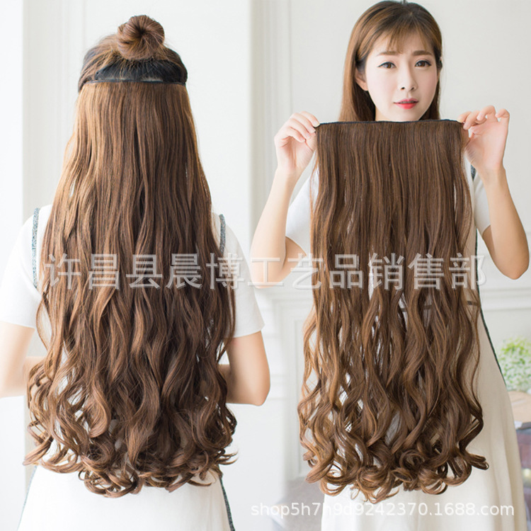 Wig Women's Five-card Seamless Curly Hair Extending Piece Mid-length Card Hair Piece Synthetic Hair Chemical Fiber Thickened Wig Piece