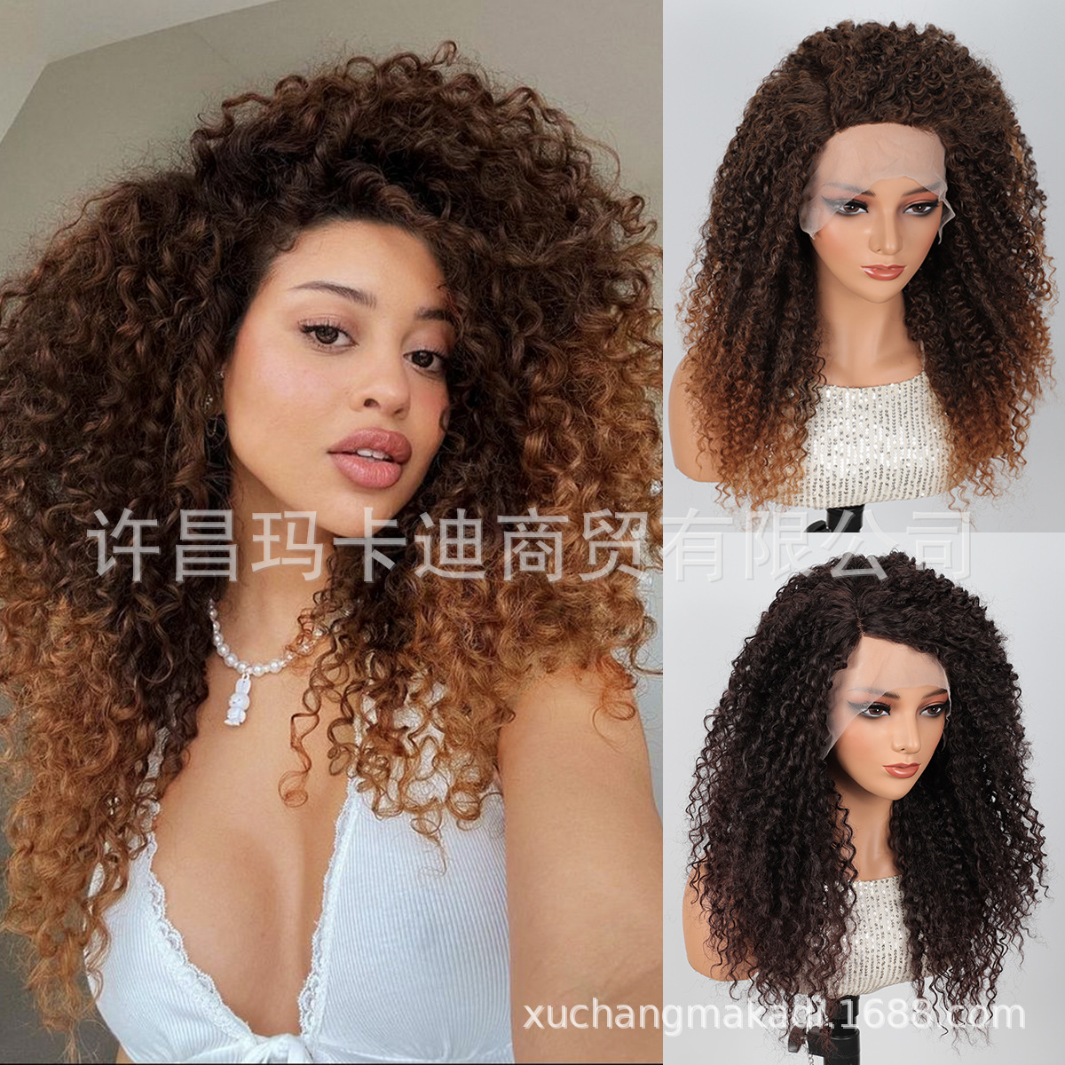 European and American Lace Wig Headgear Afro African Ladies Curly Hair Fluffy Small Curly Synthetic Wig Ready for Delivery