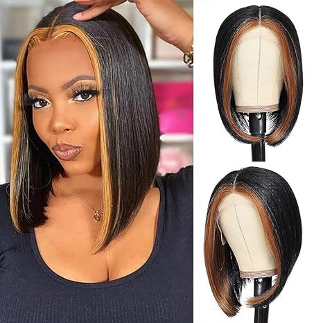 Cross-border Wig T-shaped Front Lace European and American Women's Brown Spotted Short Straight Bob Buckle Synthetic Wig Headgear