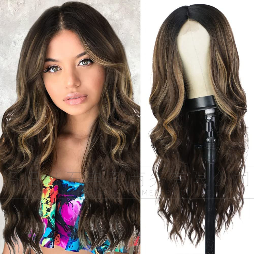 Amazon cross-border front lace wig big wave long curly hair heat-resistant synthetic wig chemical fiber full head cover batch