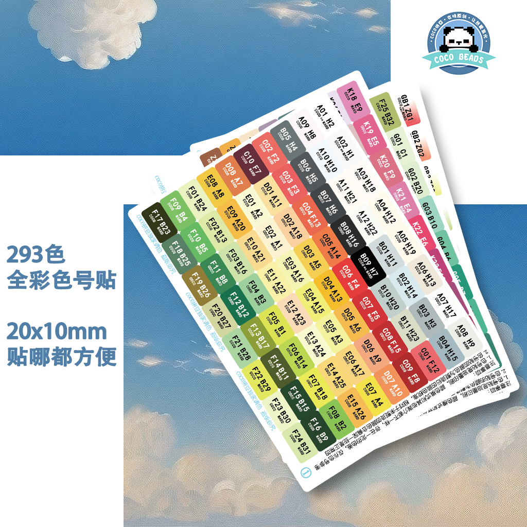 Coco Bead Fusion Bead Color Chart Sticker 293 Colors Full Color 20X10Mm Rounded Rectangular Sticker