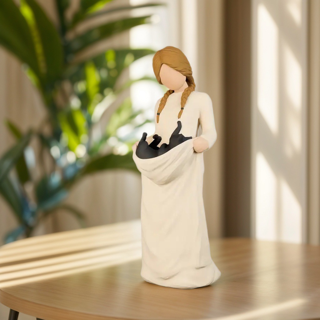 Willow Carved Ornament Girl Holding Cat for Animal Lovers and Cat Owners, Carved Hand-painted Doll