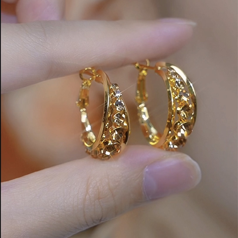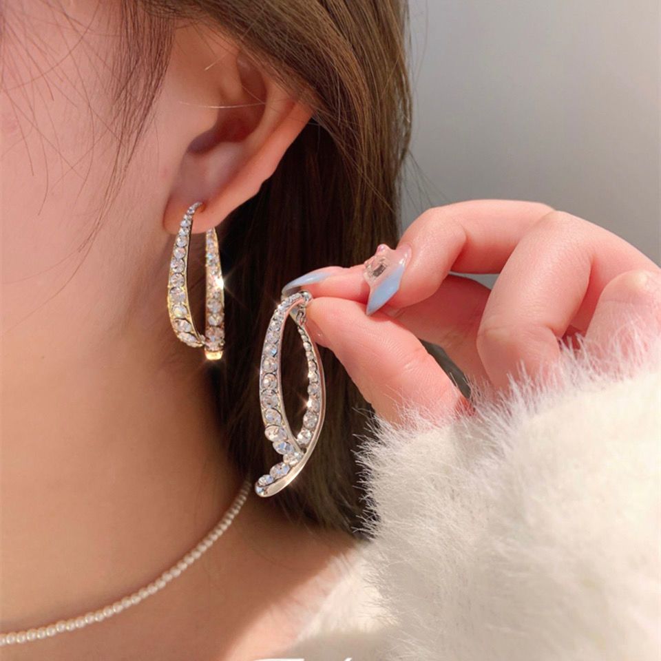 Minimalist and Cool Style, High-End Feel, Diamond-Encrusted Hoop Earrings, Retro Fashion, Niche Design, Internet Celebrity Earrings