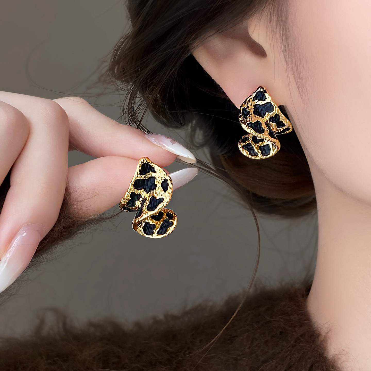 Retro Hong Kong Style Geometric Leopard Print Hoop Earrings, French Style, Versatile Earrings, High-End, Work Clothing, Daily Wear, Cool Style