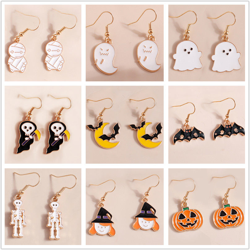 Trendy Halloween Drop Earrings For Women Moon Death Ghost Pu