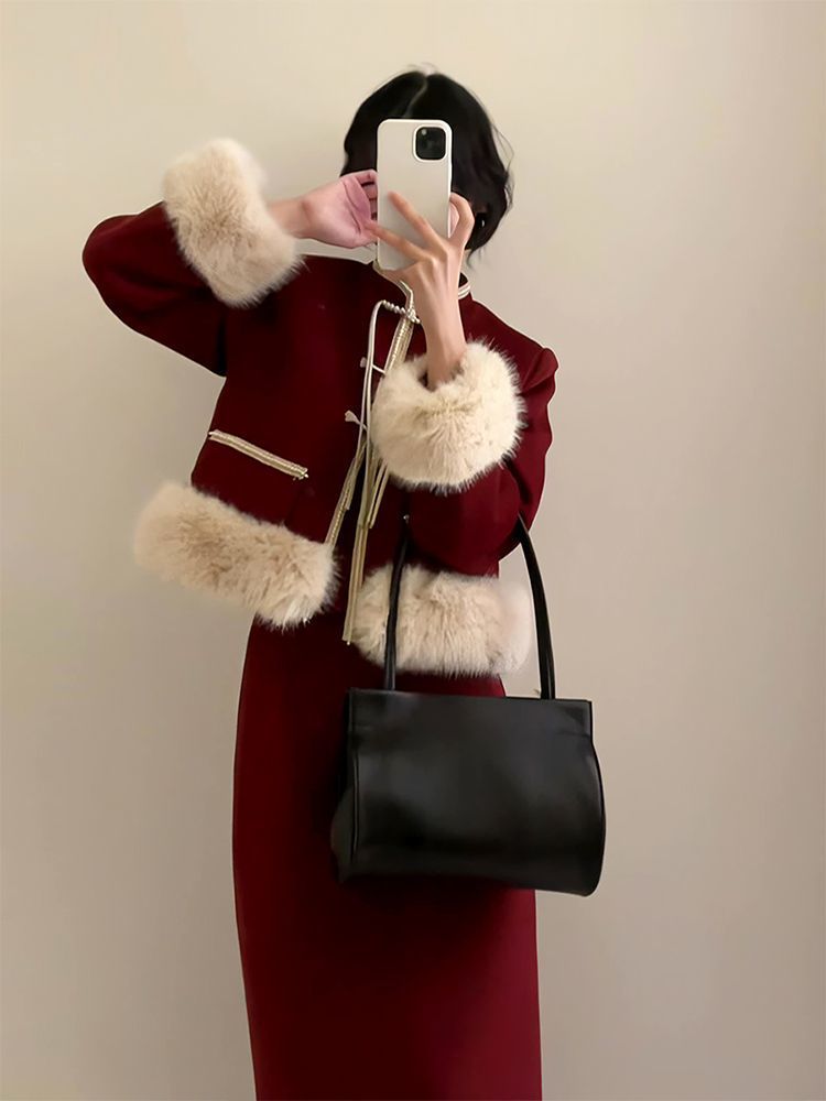 New Chinese Style National Style suit Retro Red New Year's Gown Limited Elegant High-end Jacket Skirt Two-piece Set