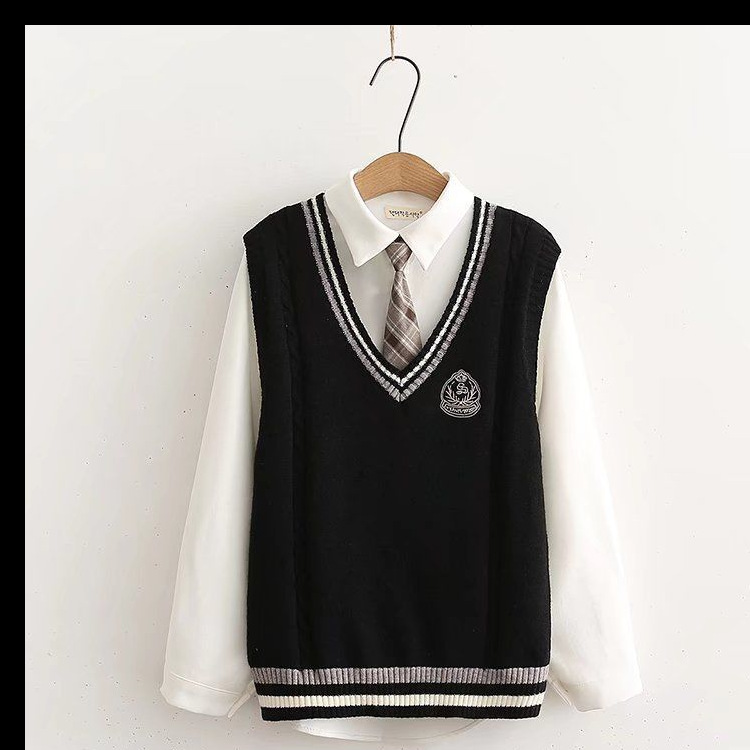 2024 Spring and Autumn new preppy style suit male and female students Korean style loose long-sleeved shirt knitted vest two-piece suit