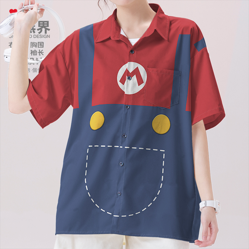 Super Mario Brothers Overalls Game Oversized Short-Sleeve Shirt Men's and Women's Clothing 17 Designs Unbounded