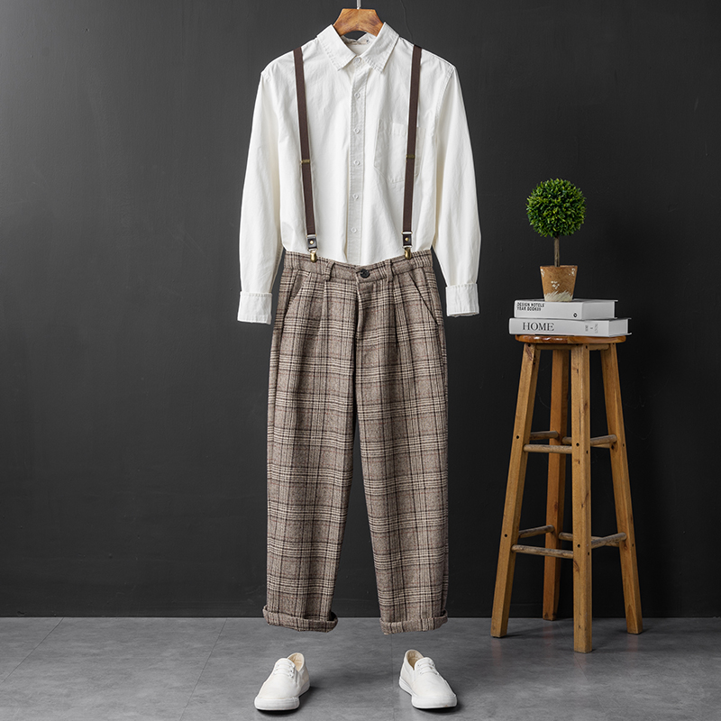 Hong Kong Style Trendy Straight-Leg Casual Trousers for Men, British Retro Workwear Overalls with Detachable Straps, Korean Style Couple Overalls