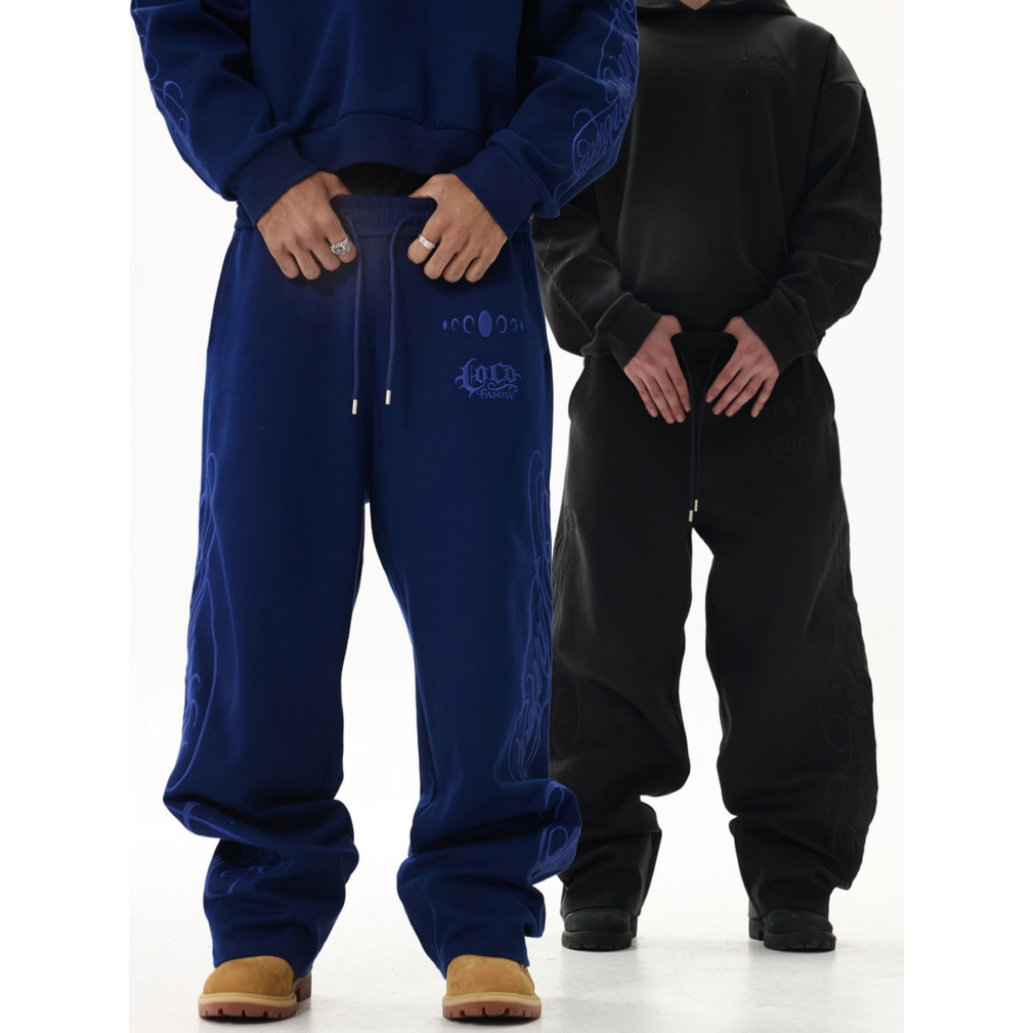 Karmanistic X Loco Co-Branded Embroidered Loose Wide-Leg Sweatpants Set for Men and Women, Autumn and Winter Hooded Sweatshirt