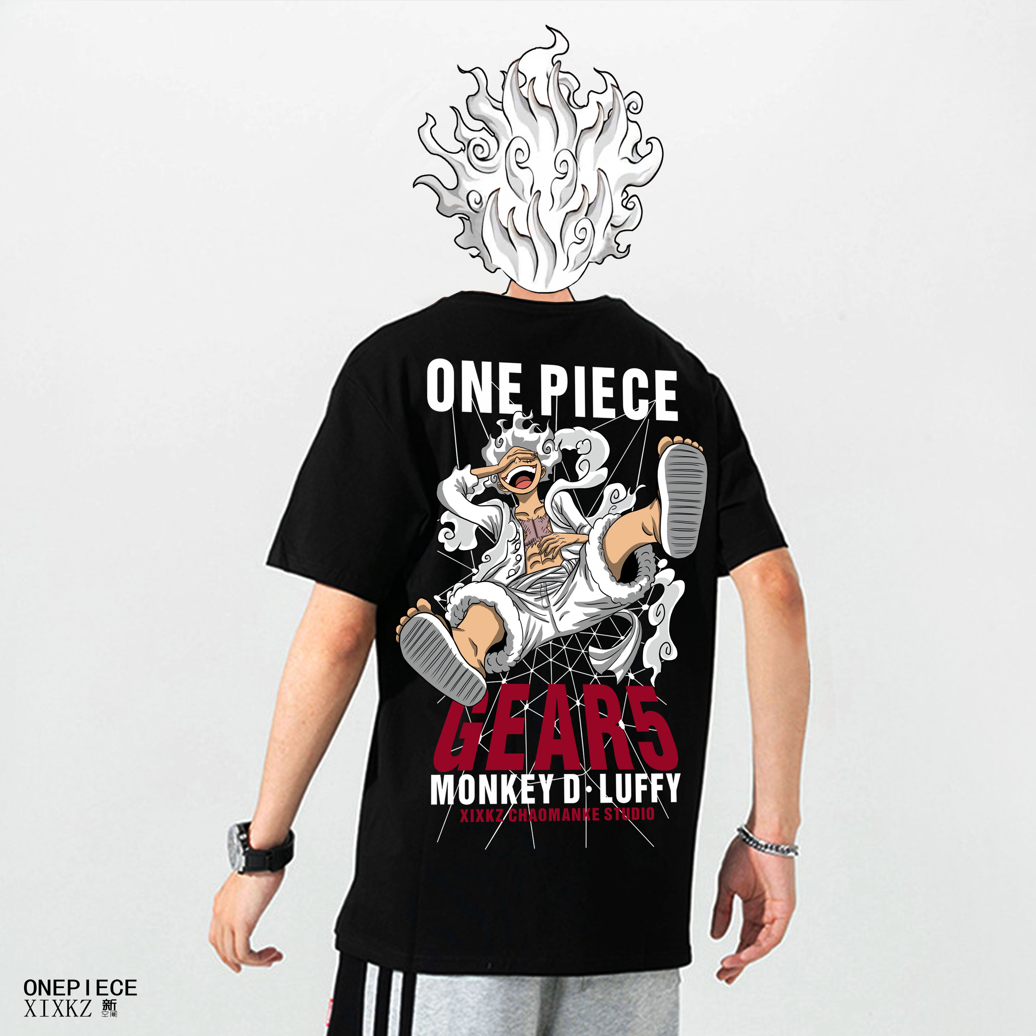 Cross-Border Japanese Manga One Piece Luffy Washed Loose Pure Cotton Vintage Style Short-Sleeve T-Shirt