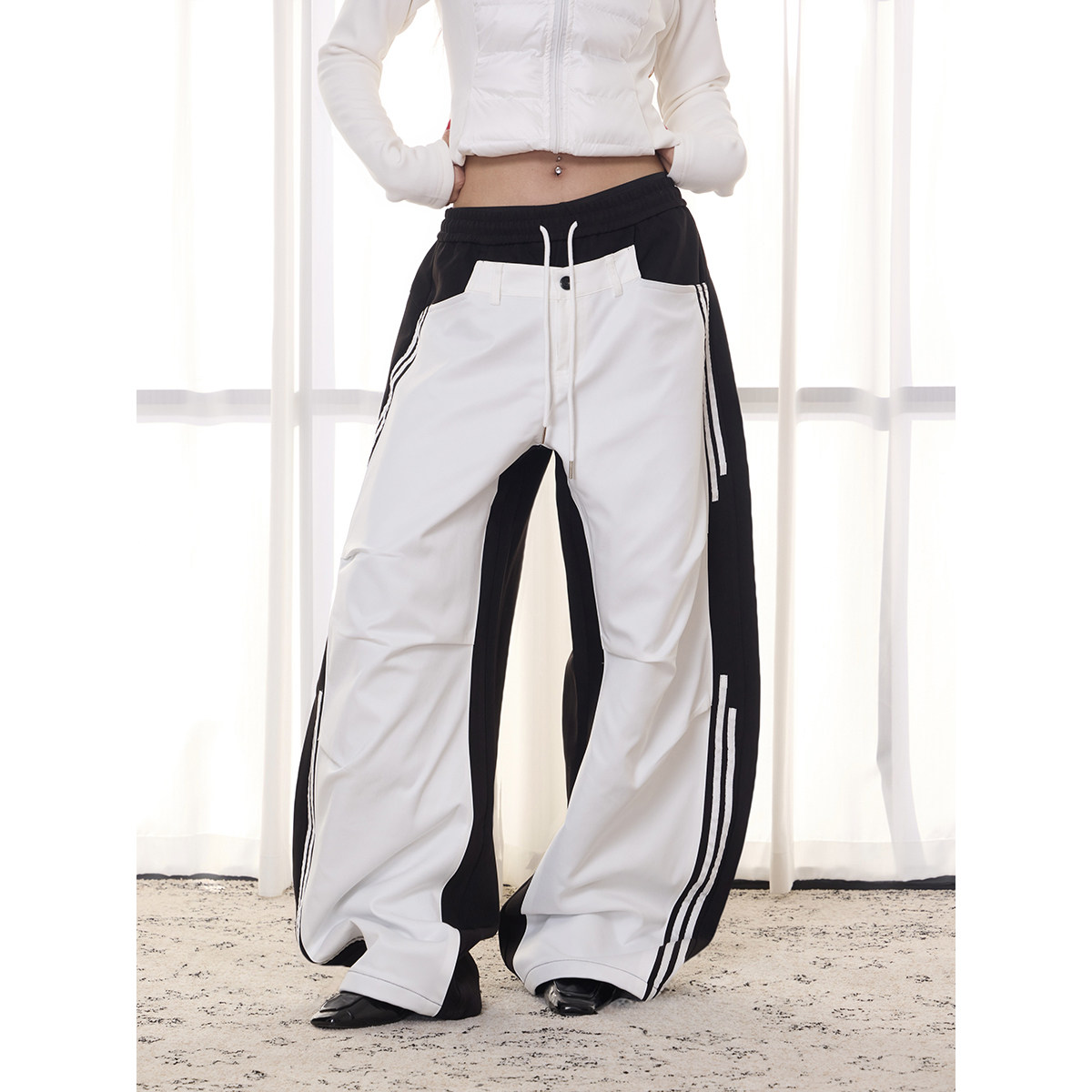 Tyesk [Bright] A-Line Wide-Leg Casual Pants That Don'T Accentuate the Hips, Trendy Niche Design, Loose Long Pants