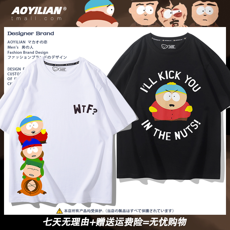 South Park T-Shirts Around the Area, Cartoon Animation Short-Sleeve Cotton Shirts for Men and Women, Trendy and Versatile