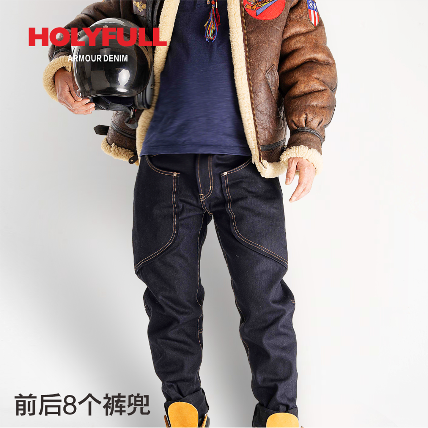 Vintage American Japanese Style Trendy Armor 2Nd Generation Heavy 18-Ounce Double-Dyed Red Earphone Denim Workwear