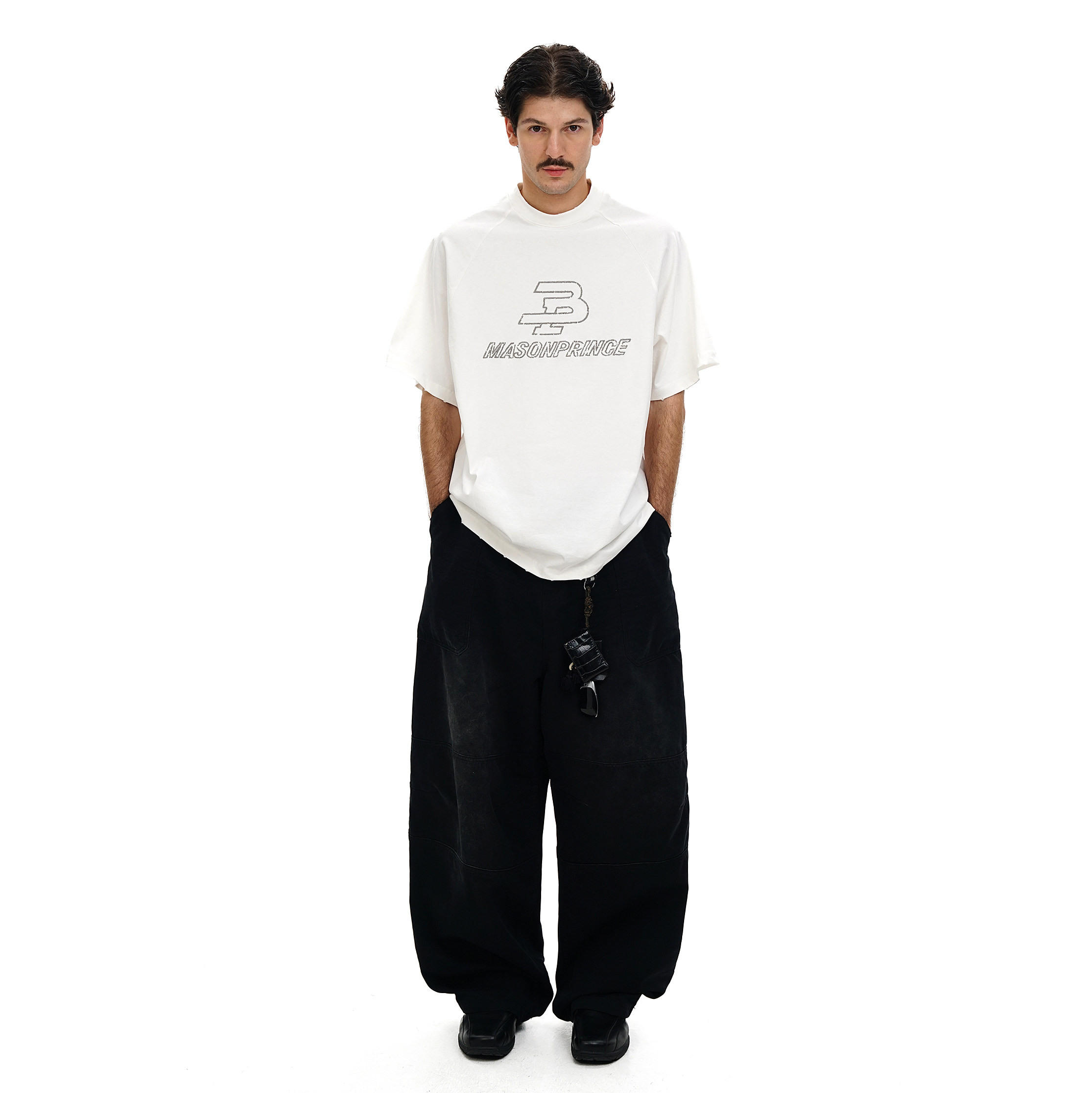Masonprince Spring and Summer Classic Silhouette Sports Raglan Sleeve Two-Color Embroidered Short-Sleeved Men's Loose Retro T-Shirt Trendy