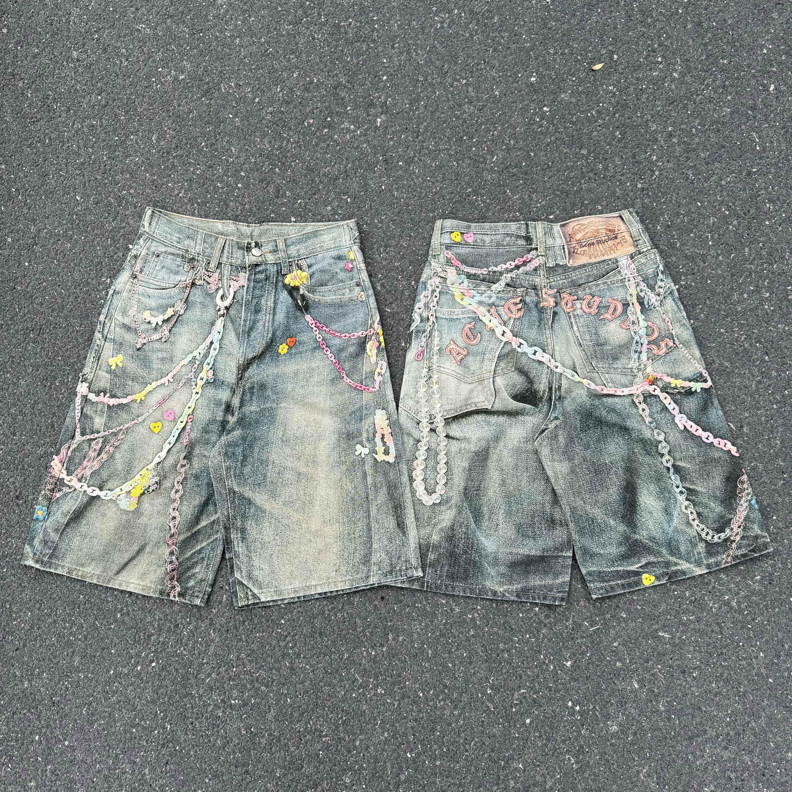 Factory Director's Original Ac Candy Chain 3D Printed Denim Shorts American Vibe Summer New Loose-Fitting Cropped Pants