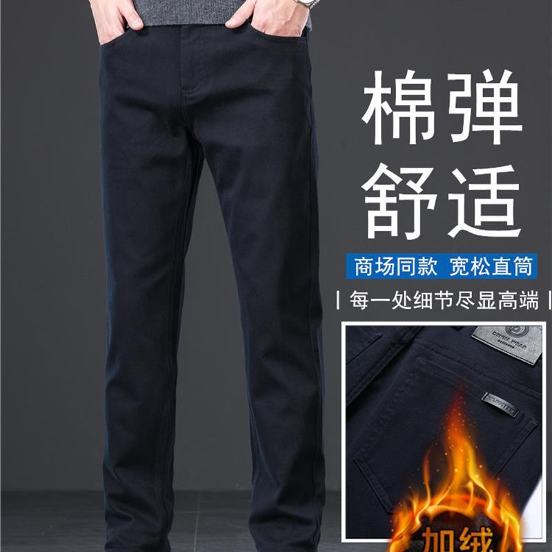 Hong Kong 2024 Autumn and Winter Classy Fleece-lined thickened Casual Pants Men Loose Straight Leg Pants Business Stretch Long Pants