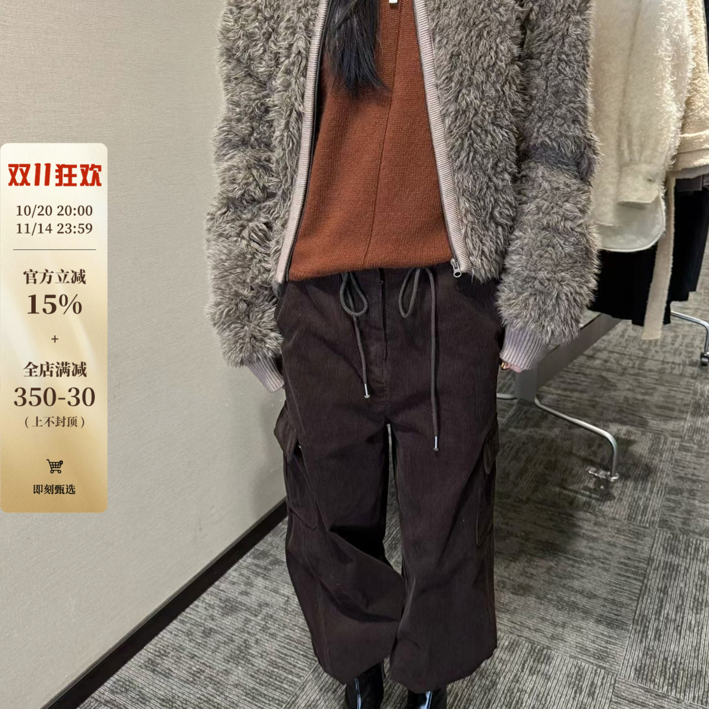 Neihai Korean SAMOMO texture Maillard old money pocket parka drawstring Straight-leg corduroy casual pants pants