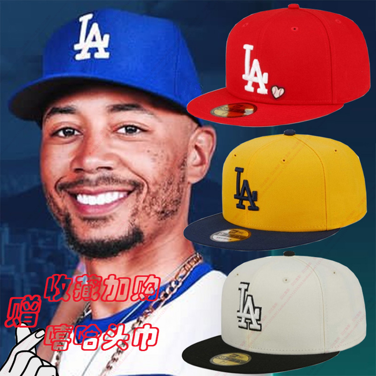 Hat La Los Angeles Dodgers Non-Adjustable Flat Brim Baseball Full-Coverage High-Top Large Reverse-Wear Hip-Hop Cap