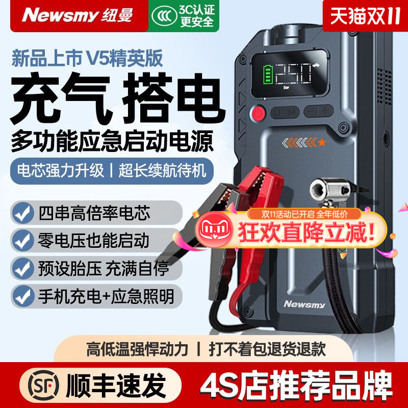 Newman V5 Car Emergency Jump Starter Power Bank with Air Pump Integrated Machine Battery Booster Ignition Device