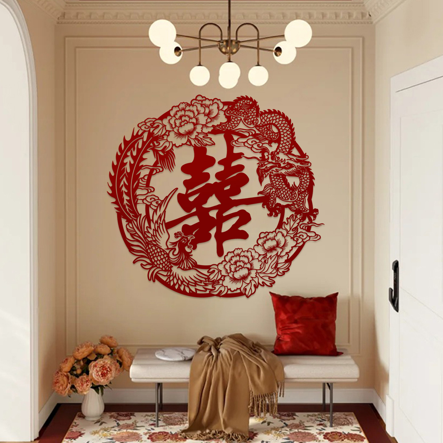Wedding Flocking with the Word "Double Happiness" for Engagement, Self-Adhesive Decorative Background Wall, Bedroom, Living Room, Door, Wedding Room Layout, the Word "Double Happiness"