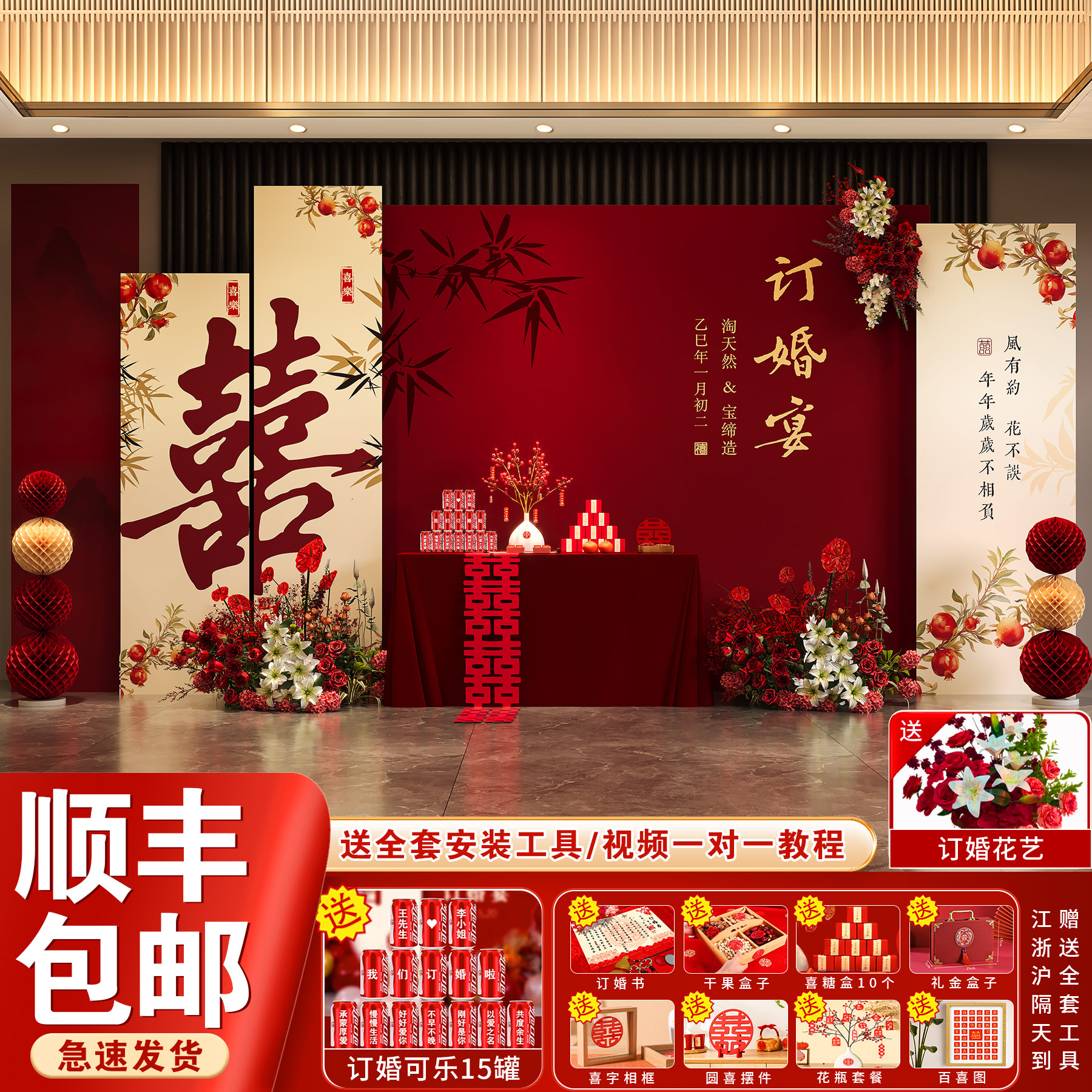 Engagement banquet decoration full set of KT board background Wall new Chinese style Fancy engagement table engagement decoration ceremony