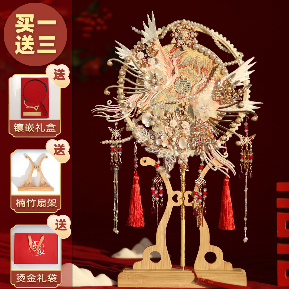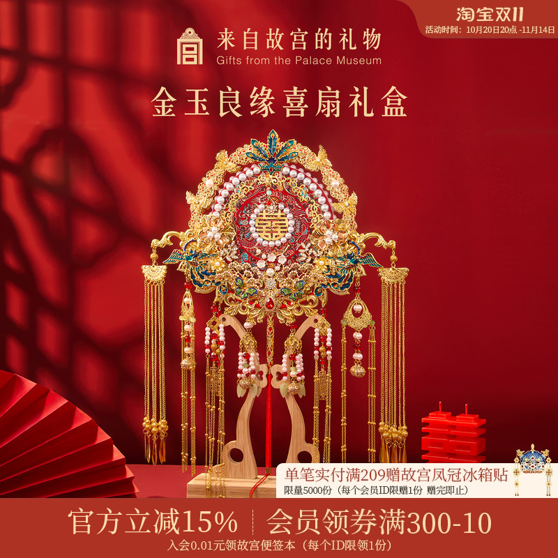 Forbidden City Taobao|Golden and Jade Love Round Fan Wedding Fan Gift Box New Marriage Engagement Gift for Bride, Newlyweds, and Best Friends