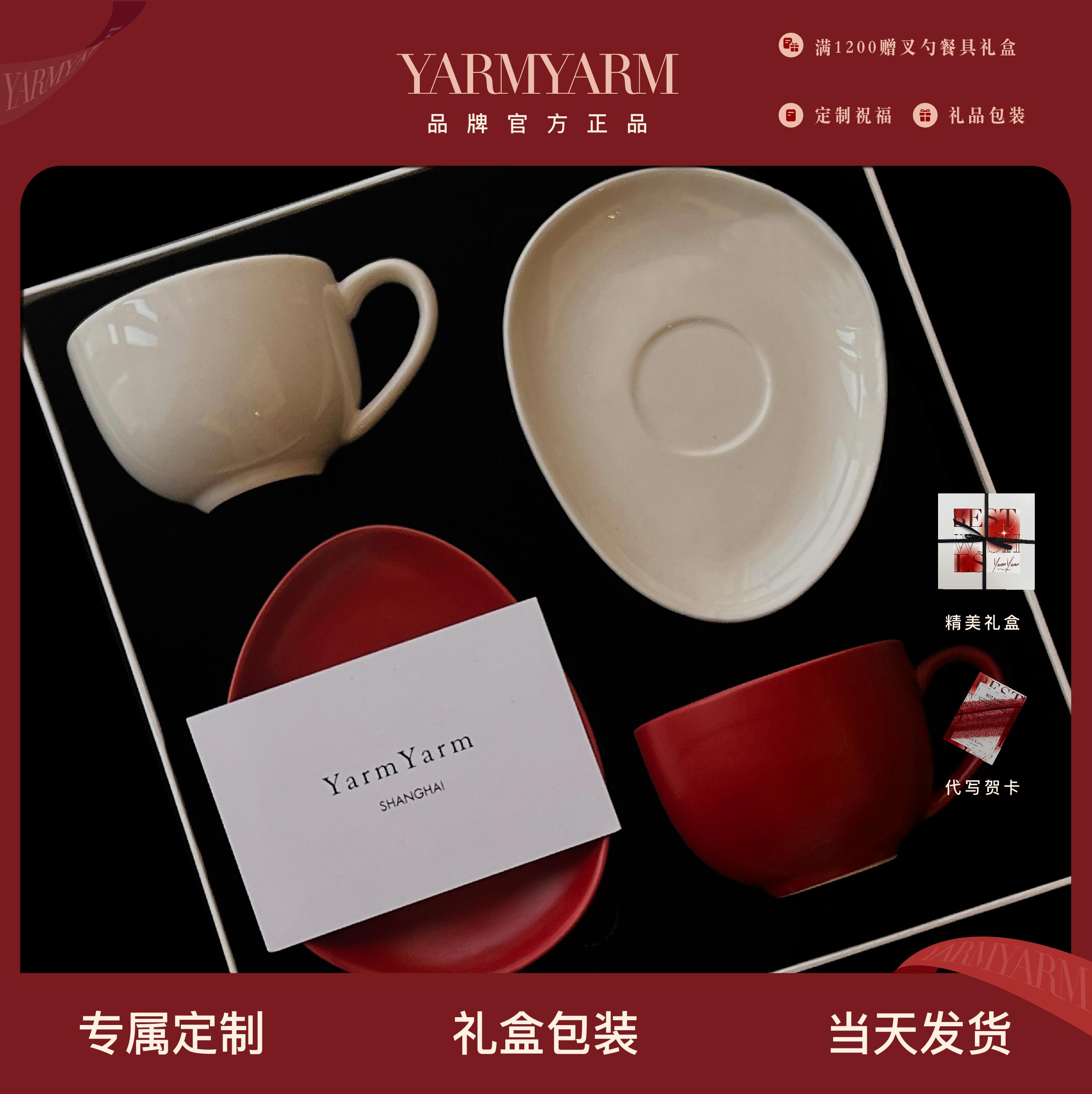 Yarmyarm's "White Moon Red Silk" Series Cup and Saucer Gift Box, High-End Custom Wedding Favors, Housewarming, Birthday Gifts