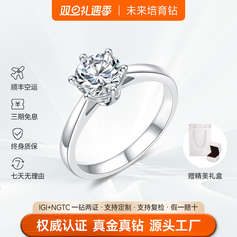 Igi Lab-Grown Diamond Ring 18K Gold Platinum White Gold Engagement Proposal Henan Artificial One-Carat Diamond Ring for Women