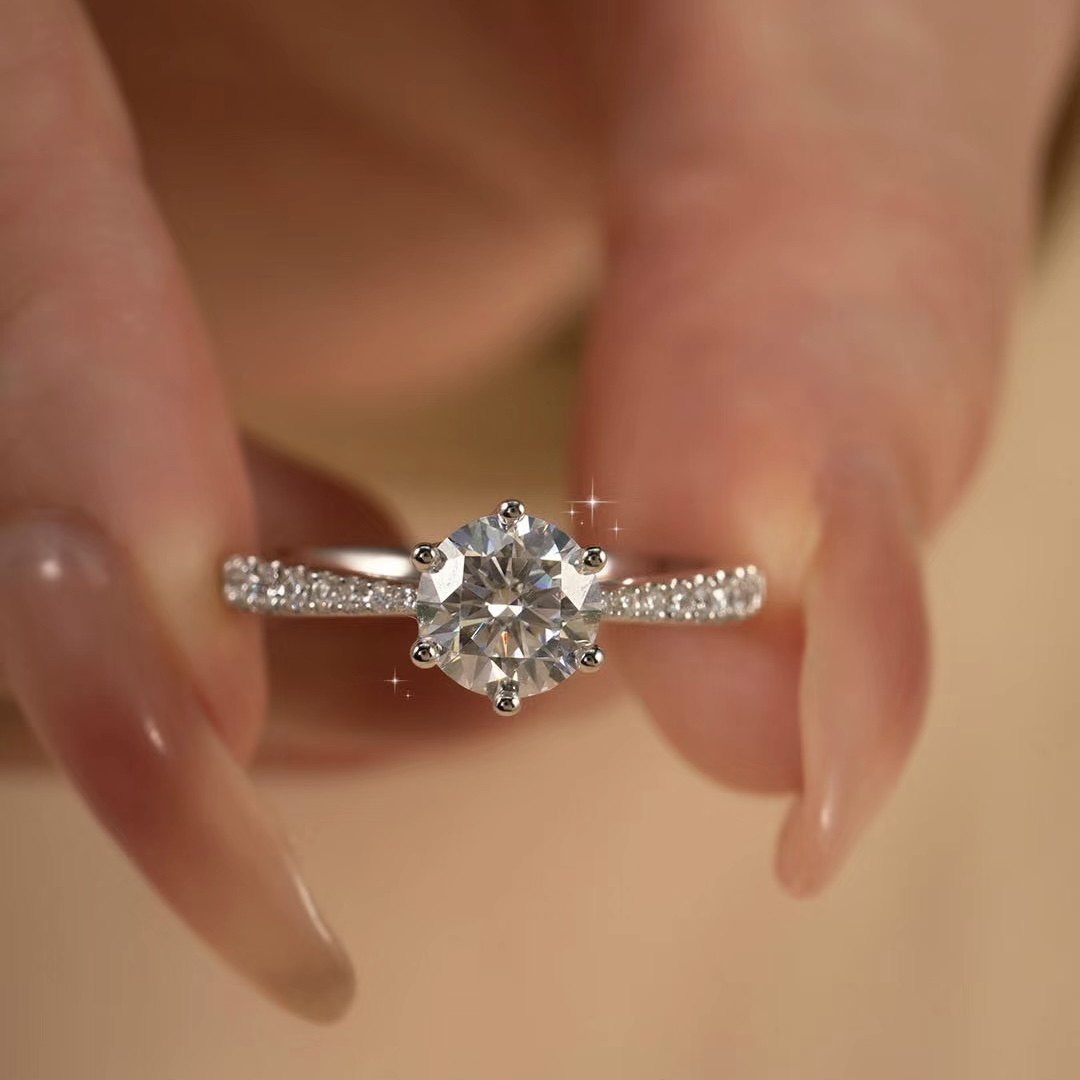 D Color Imported Moissanite 1 Carat Diamond Ring for Proposal, Engagement, Wedding, Micro-Paved Classic Six-Claw Ring, Women's Wedding Jewelry