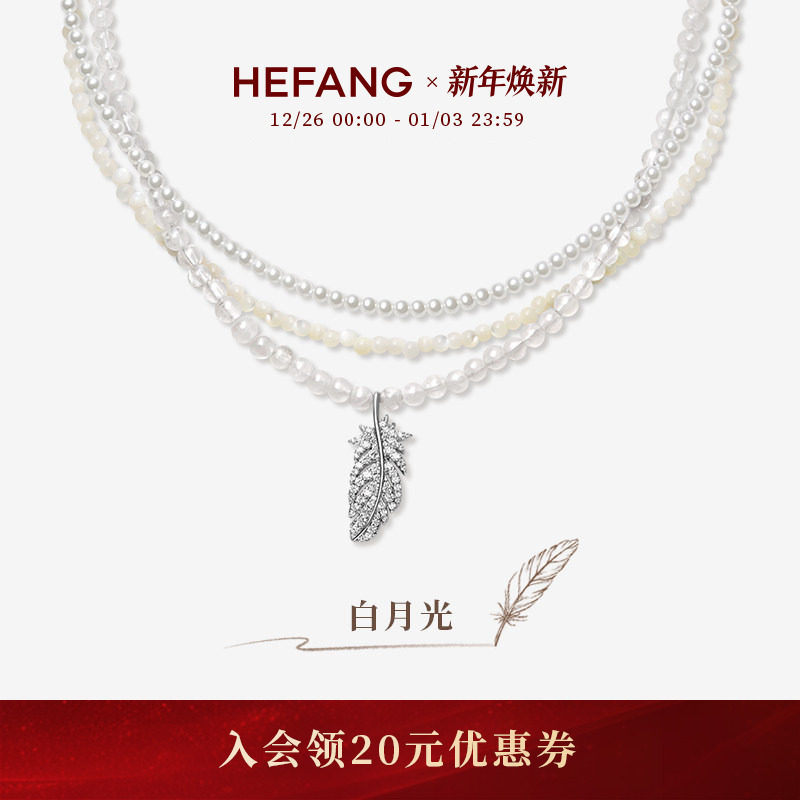 [New Product] Hefang Jewelry White Moonlight Feather Necklace Light Luxury Elegant Accessory New Year Gift