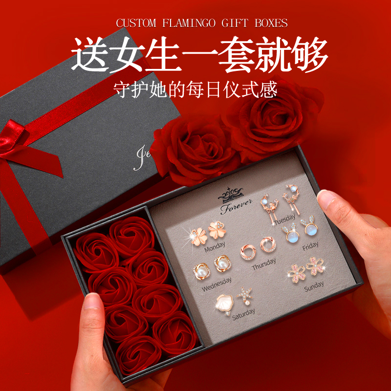 Authentic One-Week Earrings for Women, High-End Sterling Silver Earrings, Wedding Anniversary, Wife's Birthday Gift, Gift for Girlfriend