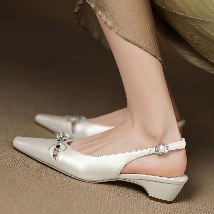 In-Stock Fairy Style Rhinestone Bowknot Open-Back Single Shoes French Low-Heeled Wedge Strap Closed-Toe Sandals for Women Summer