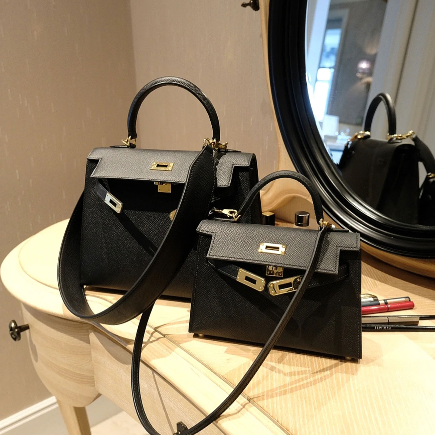 Genuine Leather Wide Shoulder Strap Palm Print Second Generation Kelly Bag 25inch High-End Large Capacity Fashionable Shoulder Crossbody Handbag
