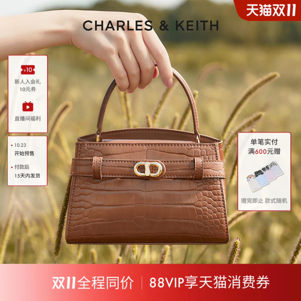Charles&Keith Autumn and Winter Women's Bag Ck2-50270880-1 Crocodile Pattern Hand-Held Kelly Bag Crossbody Bag for Women