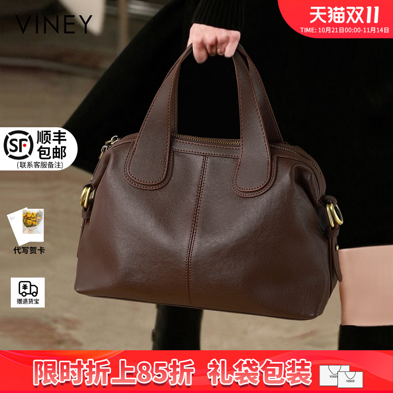 Viney Bag 2025 New Women's Bag Autumn and Winter Genuine Leather Shoulder Handbag Crossbody Bag Large Capacity Boston Bag