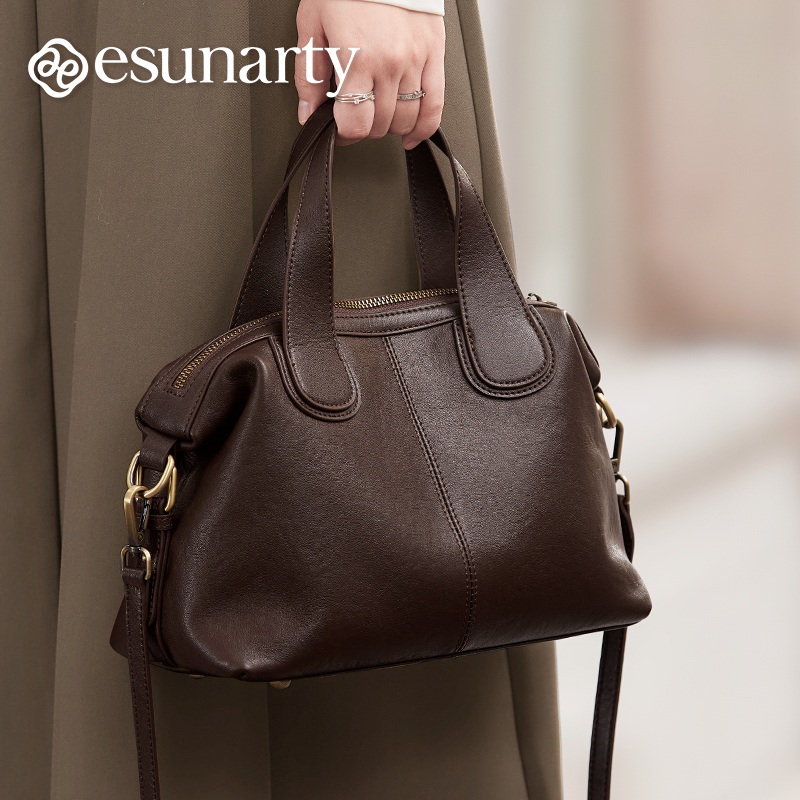 Genuine Leather Handbag for Women 2025 New Autumn and Winter Vegetable-Tanned Leather Large-Capacity Boston Bag High-End Crossbody Bag