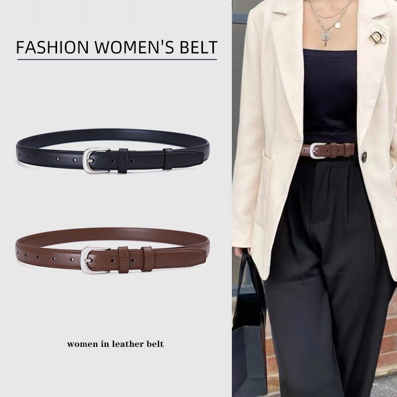 Genuine Leather Women's Small Belt Jeans Fashion All-match Belt Thin Decoration Ins Style Retro Simple South Korea Belt