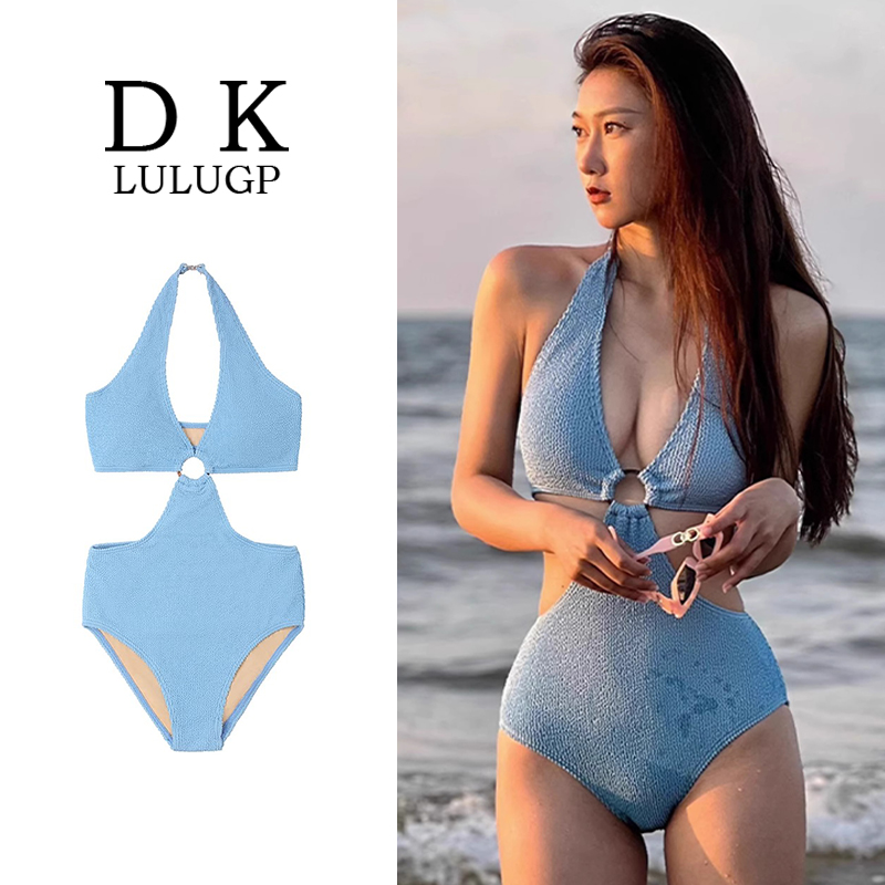 Hot Spring Swimsuit for Women, High-End 2025 New Style, One-Piece Hollow-Out Sexy Push-Up Beach Blue Bikini Swimwear