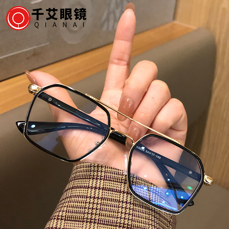 Qianai Anti-Blue Light Glasses Retro Double Bridge Pilot Flat Eye Frame Can Be Equipped with Prescription Myopia Glasses Frame for Women