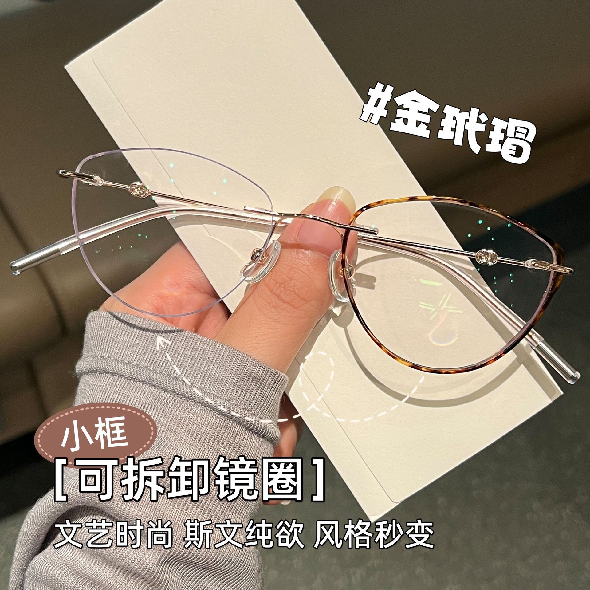 New Ultra-Light Rimless Cat-Eye Glasses for Women, Anti-Blue Light, Elegant and Face-Showing Small Glasses Wholesale Lj98090