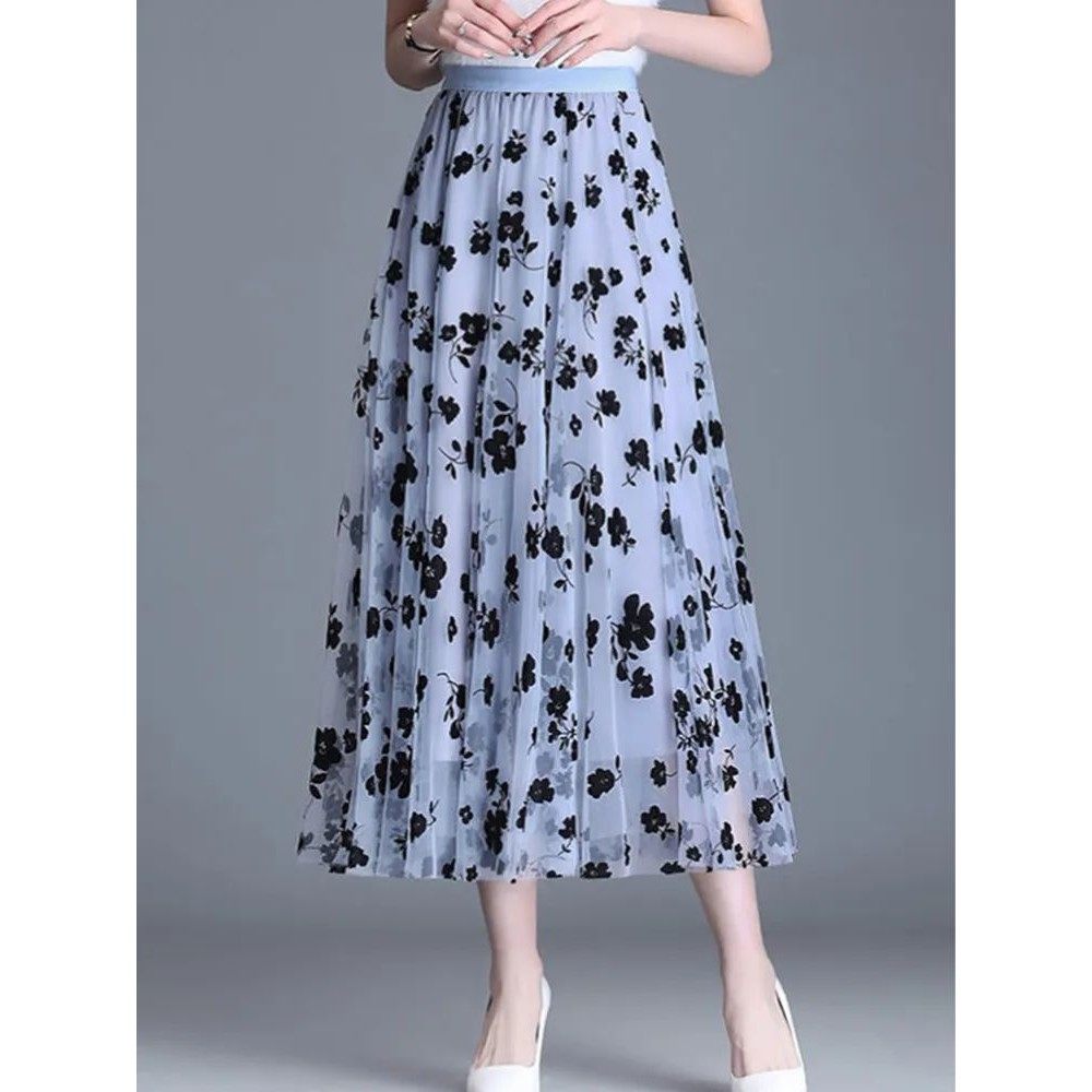Mesh Floral Skirt For Women 2024 Autumn Winter Lace Flocking