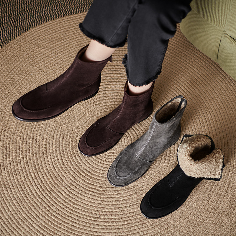 New Not Bloated ~ Naked Boots Round Head Leather Snow Boots Women's Winter fleece-lined Short Boots Frosted Leather Thin Boots Flat Horse