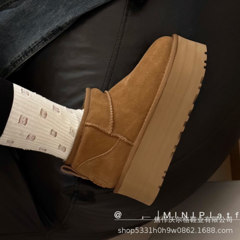 Cowhide version ~ gray snow boots women 2024 winter new thick bottom increased fleece-lined thick long tube snow cotton shoes