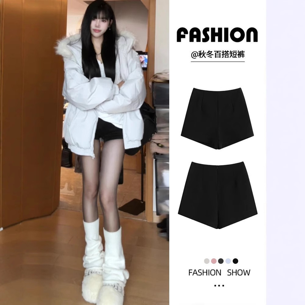 Black Elastic Shorts for Women 2025 New Spring and Summer Suits for Small People A-Line Slimming Look Outer Wear High-Waisted Sexy Hot Pants