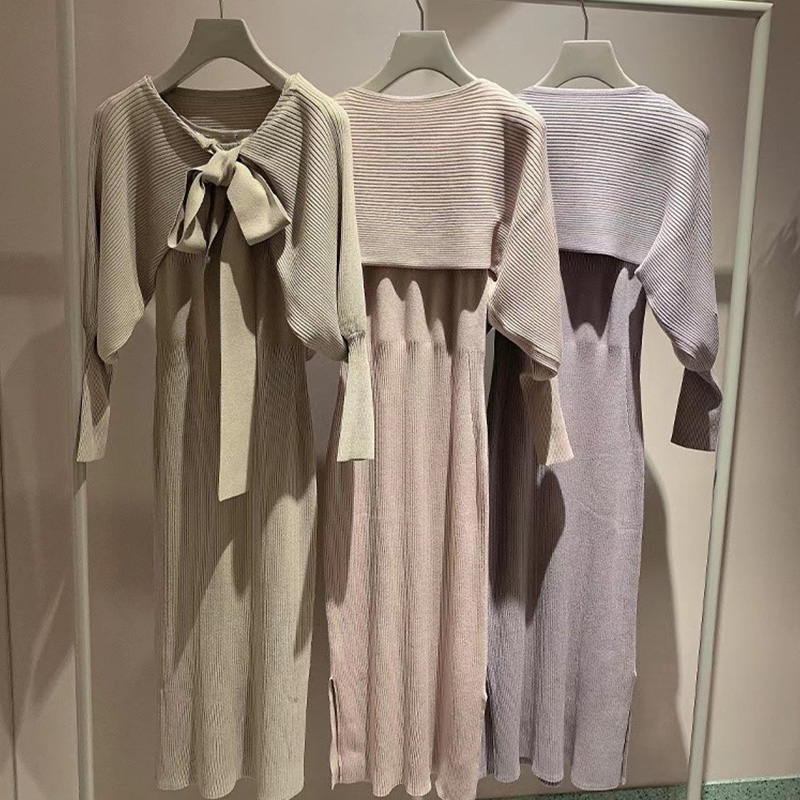 Japanese-Style Autumn Women's Clothing Sweet Two-Way Lantern Sleeve Tie-Up Blouse Sleeveless Knitted Long Dress for Women