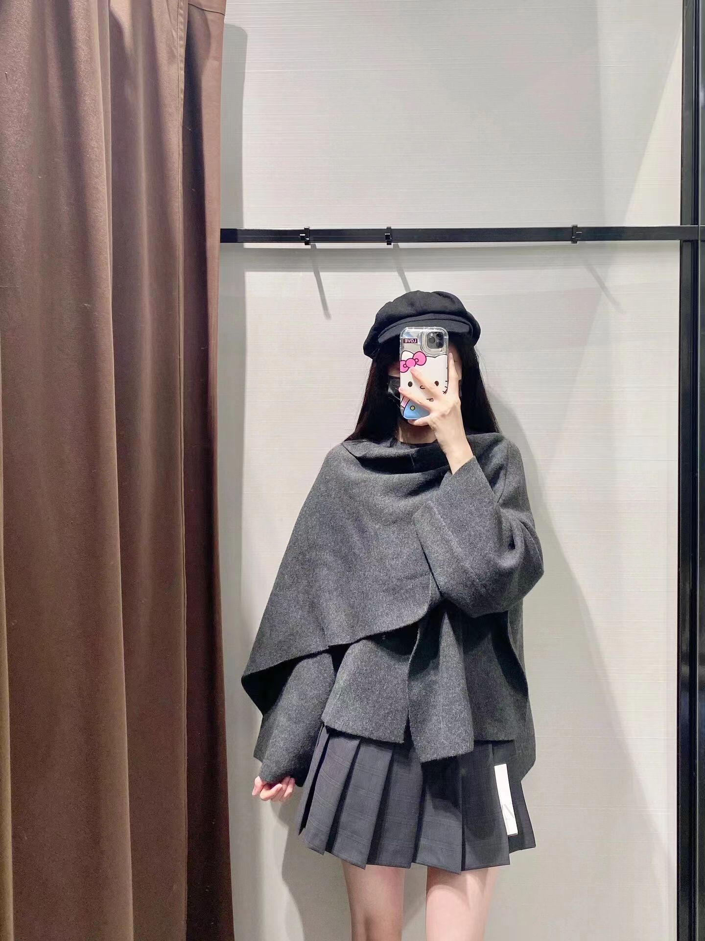 Za Fitting Room Gray Lazy Knit Sweater Scarf Shawl Cape Coat Women's Autumn 2756100 802