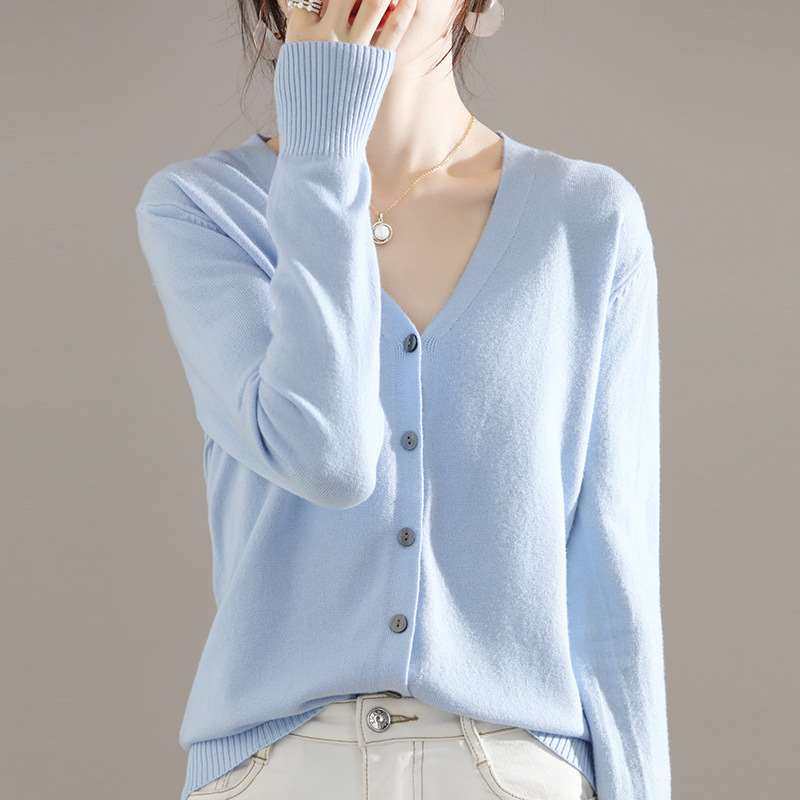 Spring Thin V-Neck Knitted Wool Cardigan Women's Loose Casual