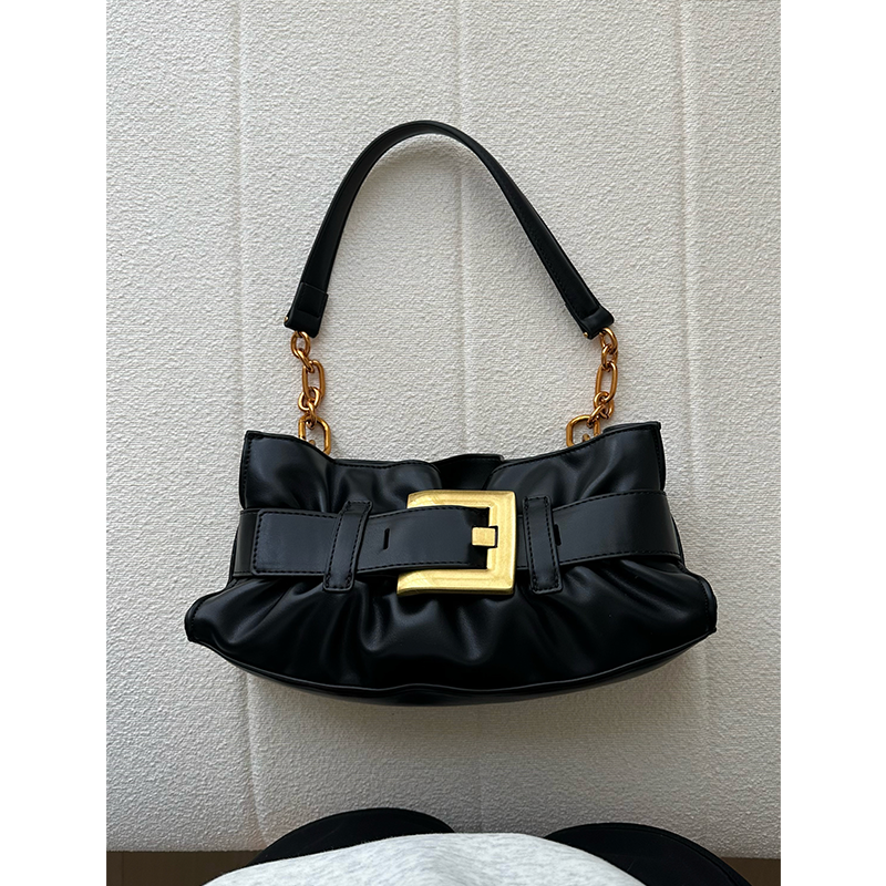 Rossy Bag Pleated Square Buckle Underarm Bag Versatile Retro Soft Leather Shoulder Solid Color Bag for Women Niche High-End