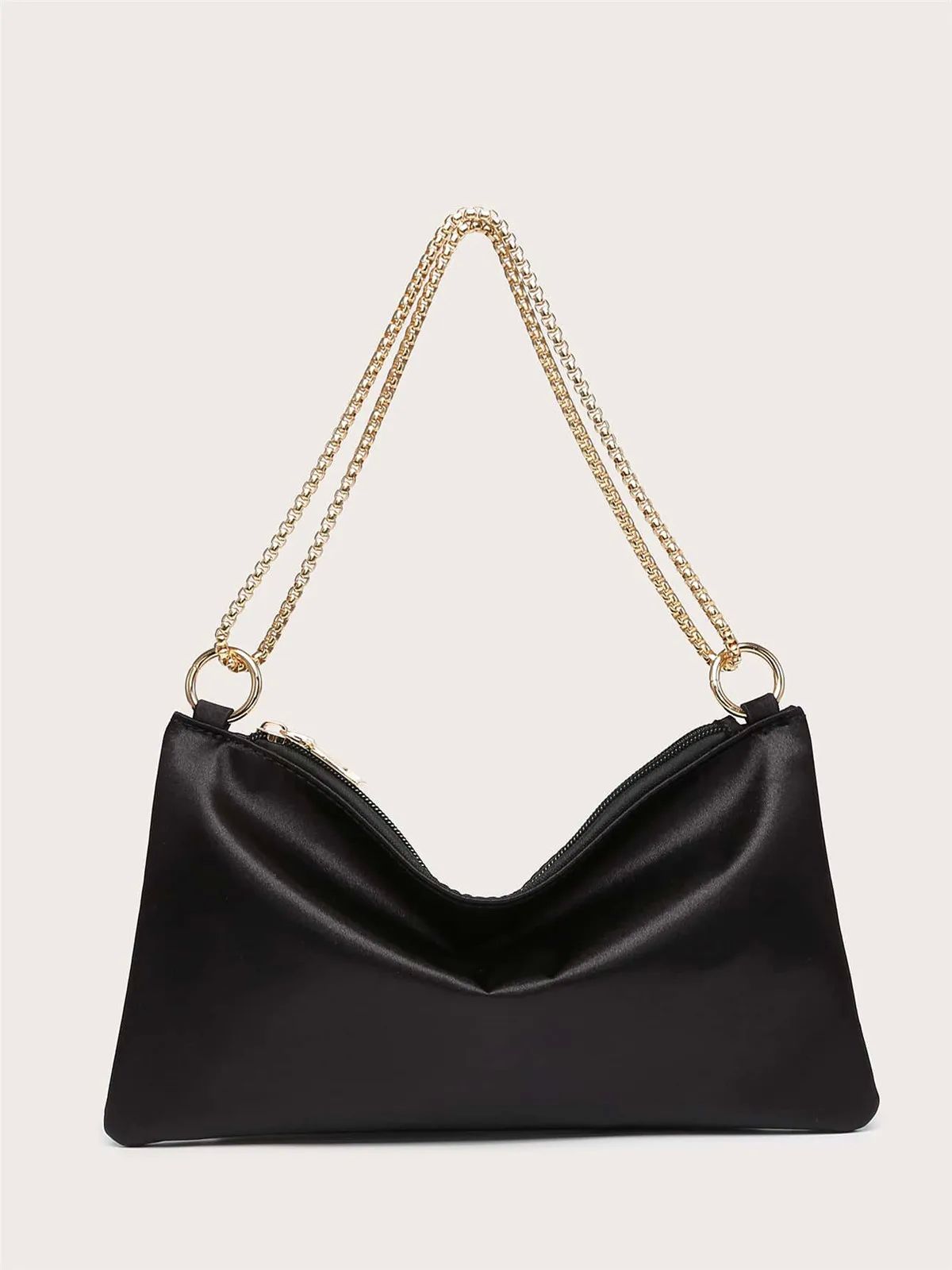 Women's Satin Evening Handbag Ring Chain Shoulder Bag Square